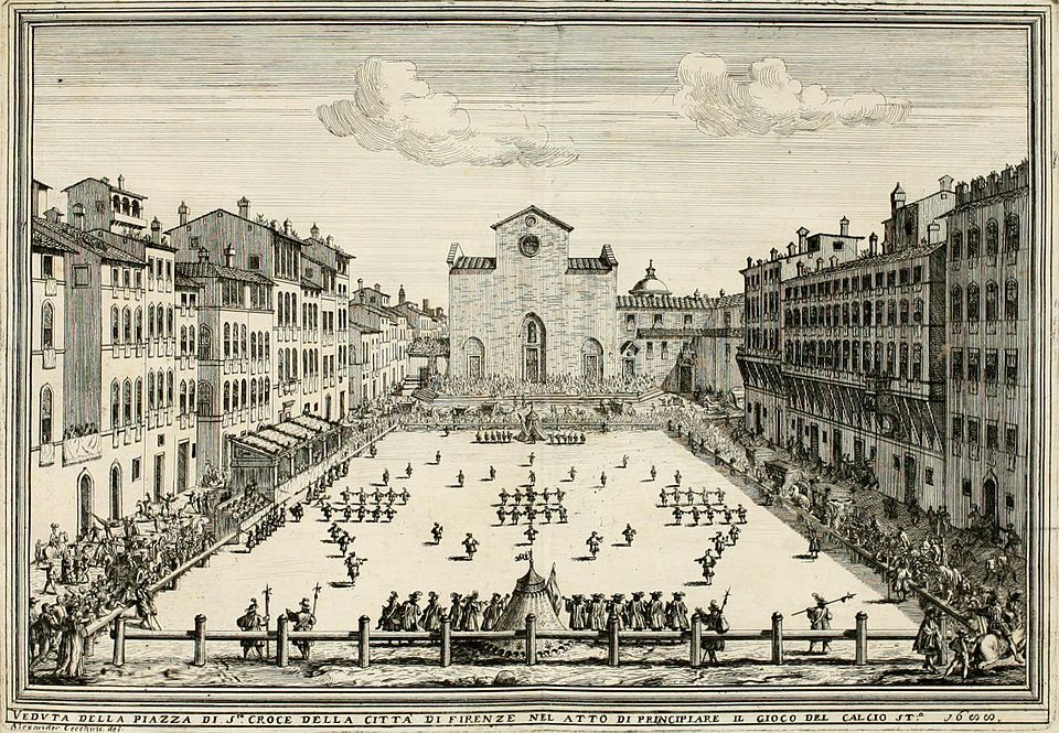 The following image etched in 1688 depicts “florentine football” being played, for links to the book and a related auction sale made at Christie’s see links below: